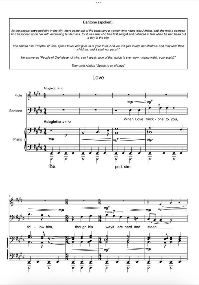 Here opens Khalil Gibran´s most famous work, "The Prophet", an important and beautiful text of poetry and philosophy. In 2025, I commissioned John Sturt to write a setting of this text.